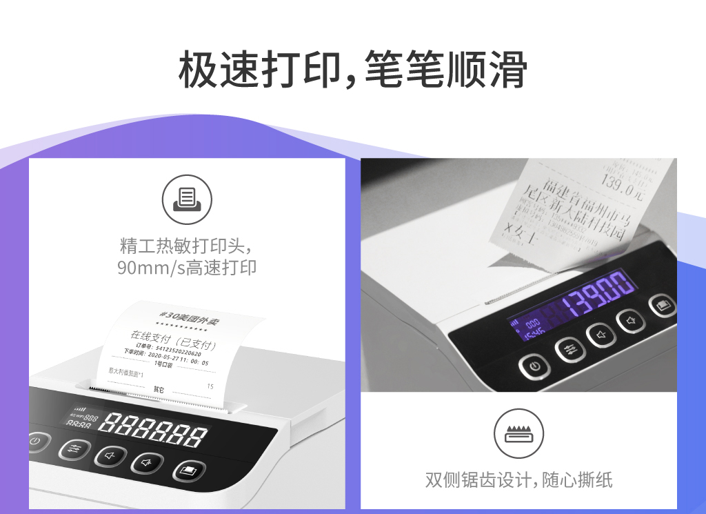 90mm/S高速热敏打印机, 58mm纸卷,纸卷直径60mm (max)