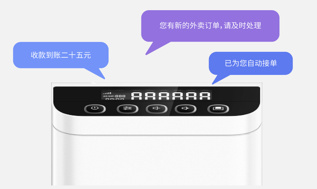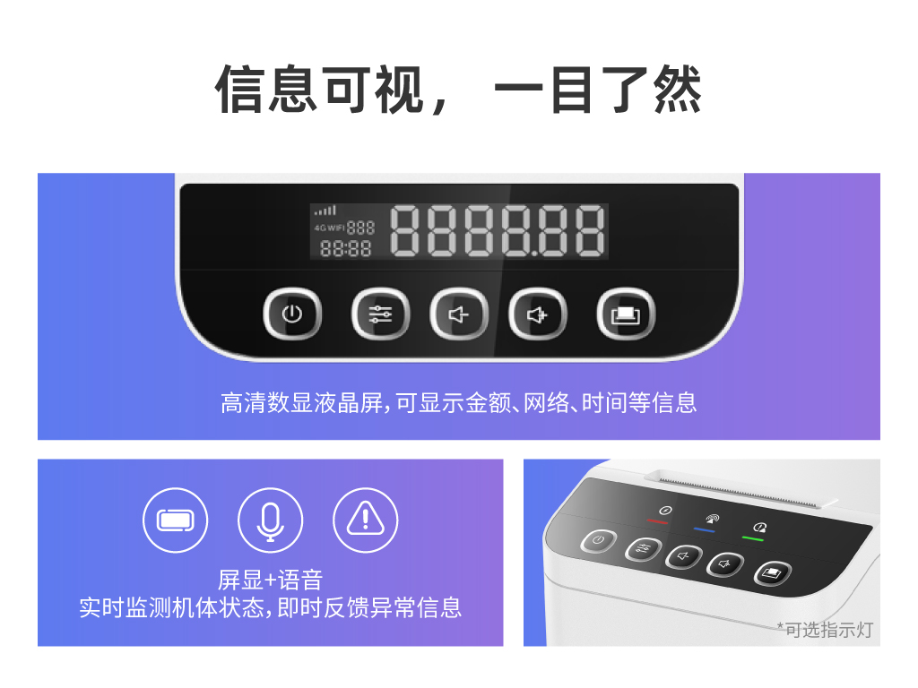 4个功能键(出纸、设置、音量+、音量-), 1个电源键